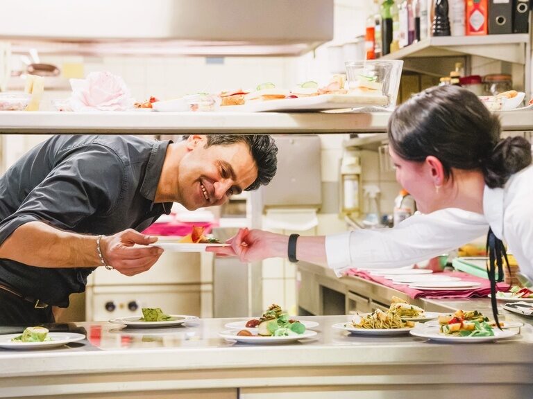 Im Preis für die Küchenparty ist ein Aperitif zur Begrüßung, wahlweise mit Alkohol oder alkoholfrei, inklusive. Begleitende Getränke am Tisch sind nicht im Preis enthalten und können nach Belieben aus unseren vielfältigen Getränke-, Wein- & Cocktailkarten bestellt werden.