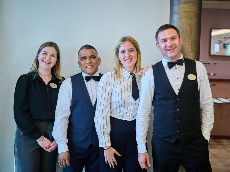 Unser Team besteht aus jungen, weltoffenen Persönlichkeiten, die eines gemeinsam haben: die Leidenschaft, anderen Menschen eine schöne Zeit zu bereiten. Ob im Restaurant, an der Rezeption oder im Spa – bei uns spürt man sofort die Herzlichkeit und den Teamgeist, der unser Haus prägt.